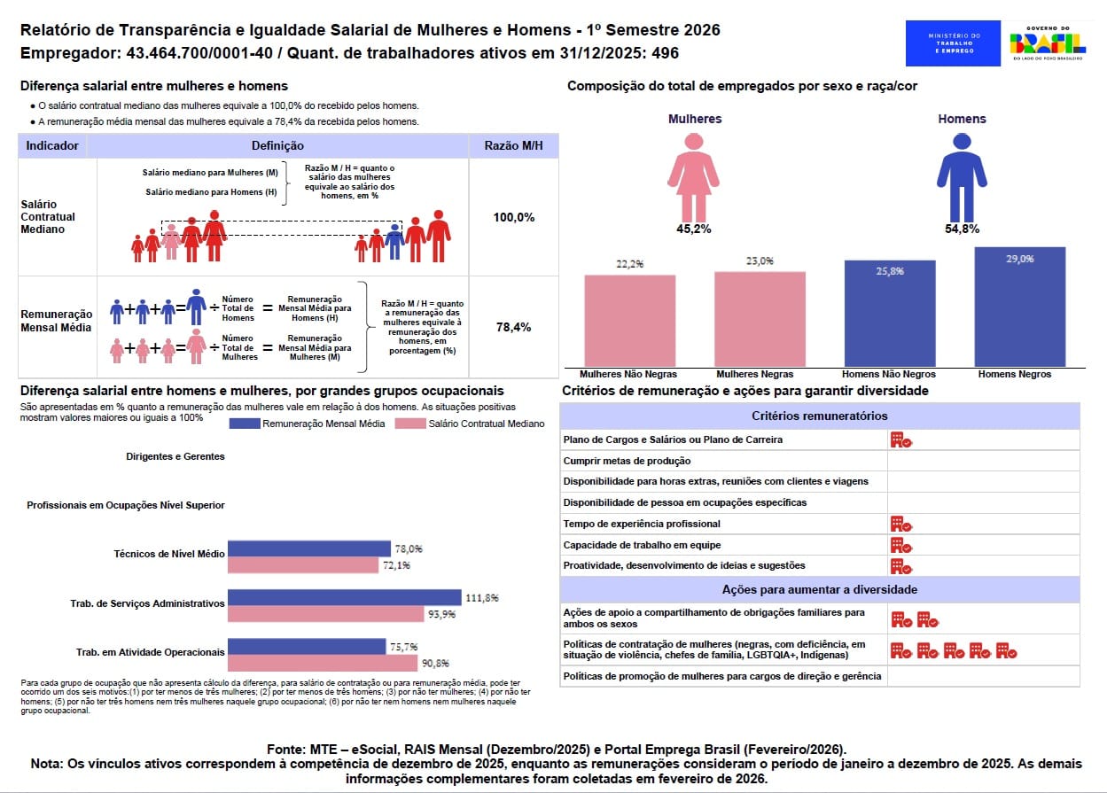 Na Granja São José, acreditamos que a equidade salarial é essencial para a construção de um ambiente de trabalho mais justo, inclusivo e inspirador. Por isso, temos o orgulho de apresentar o Relatório de Igualdade Salarial – 02º semestre 2025 e 01º semestre de 2026, reforçando nosso compromisso com a promoção da igualdade de oportunidades para todos os colaboradores.